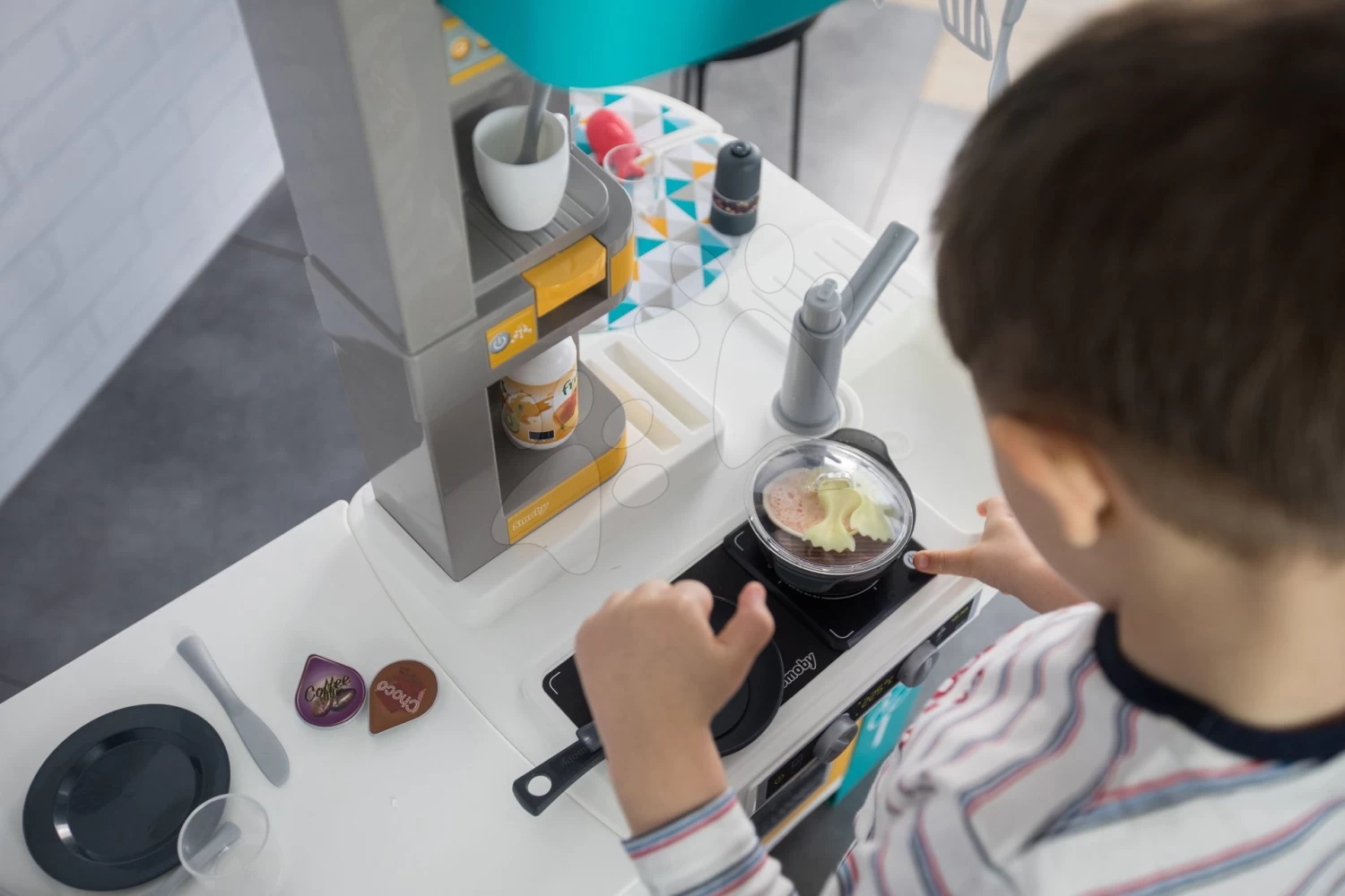 Elektronische Küche Tefal Studio 360 ° XL Bubble Smoby Türkis-gelb Mit Zaubersprudeln Und Pasta Mit 34 Zubehörteilen