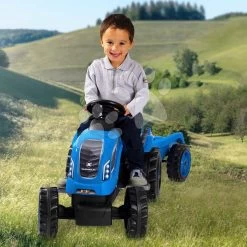 Trettraktor Farmer XL Blue Tractor+Trailer Smoby Blau Mit Verstellbarem Sitz Und Sound 142 Cm
