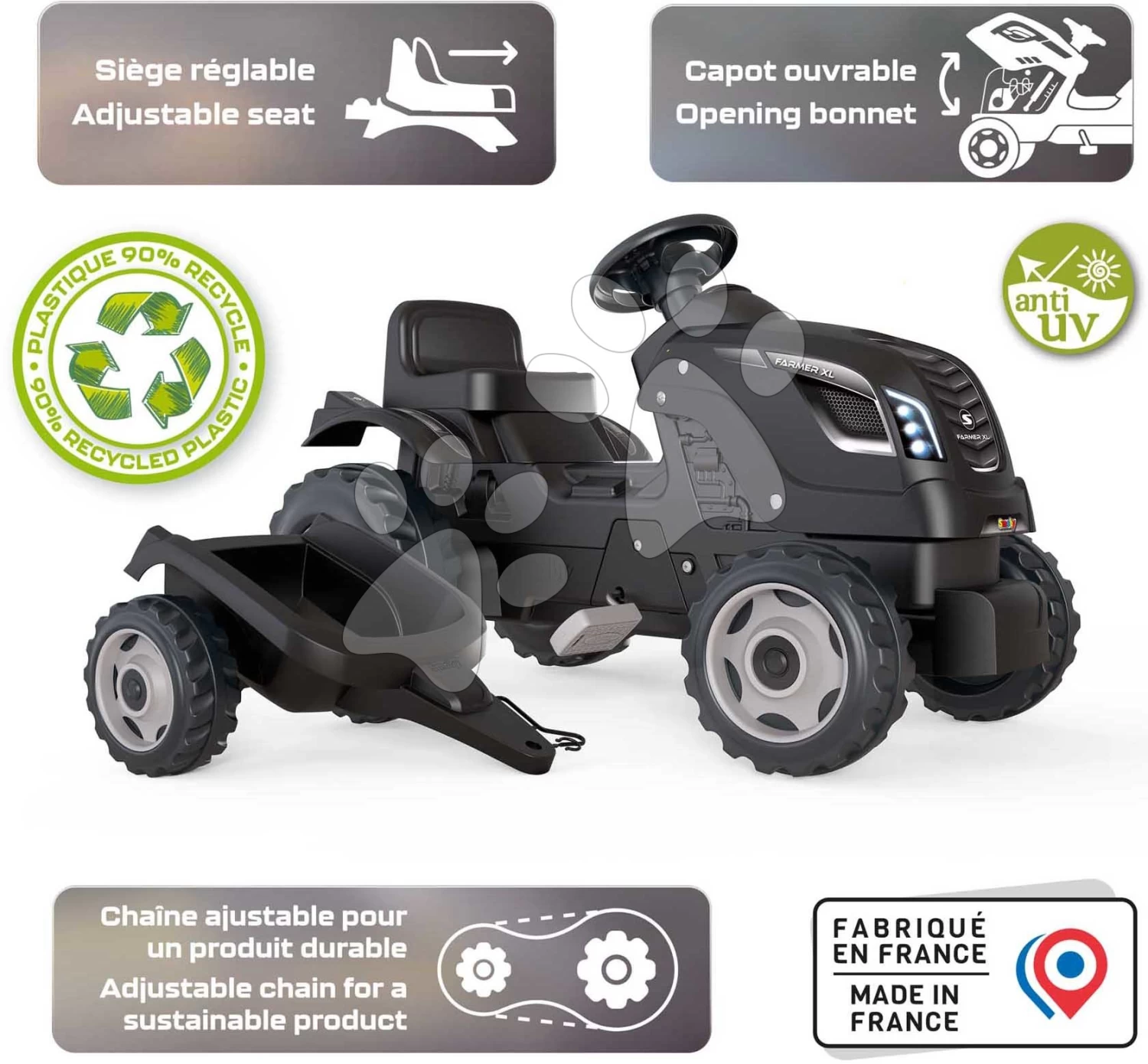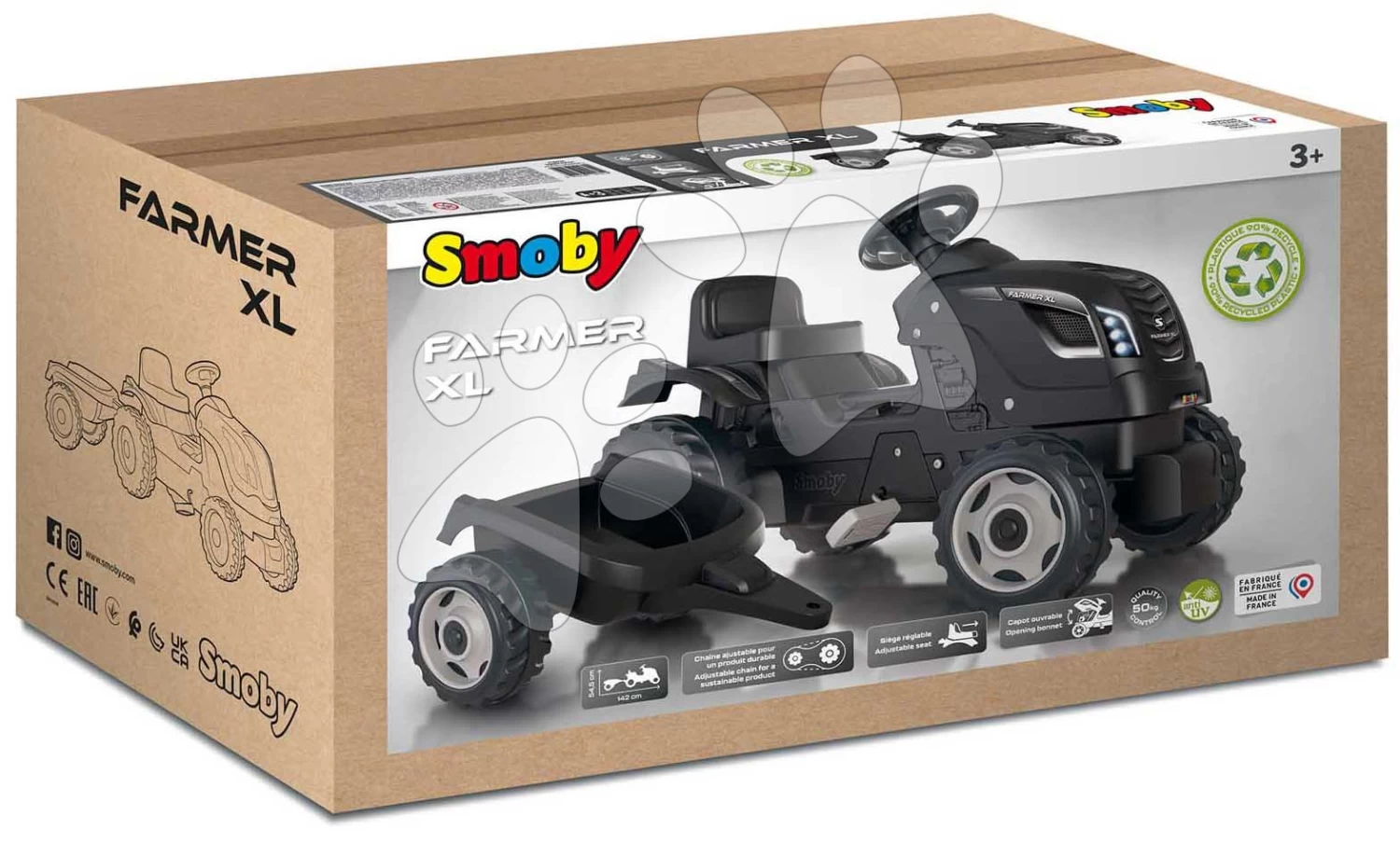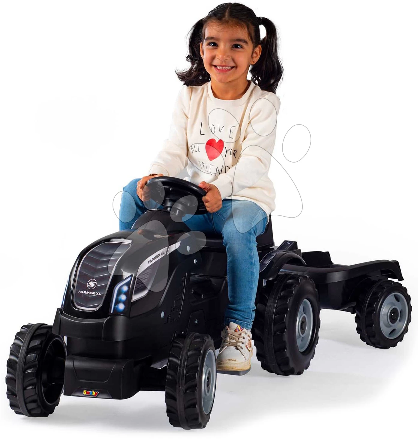 Farmer XL Schwarz Traktor+Anhänger Smoby Einachstraktor Und Anhänger Schwarz Mit Verstellbarem Sitz Und Sound 142 Cm SM710131