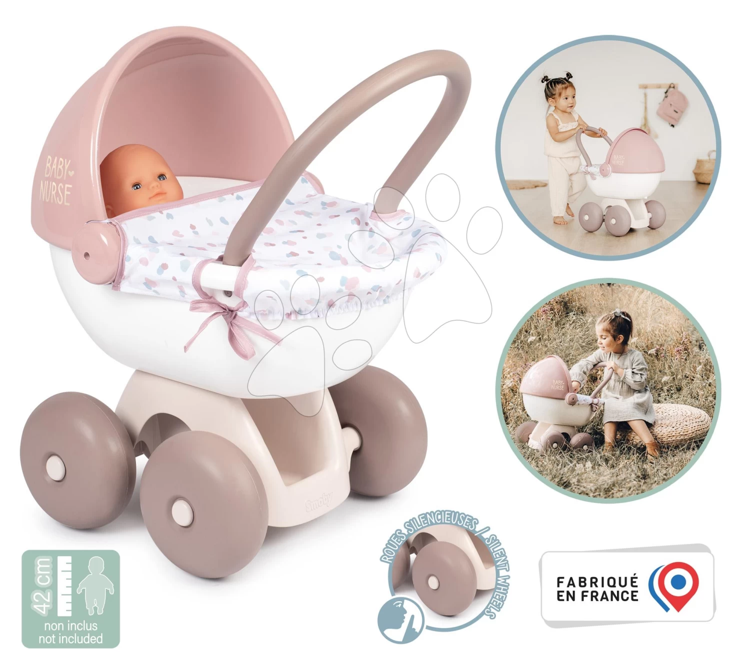 Kinderwagen Mit Textilien Natur D’Amour Baby Nurse Smoby Für Eine 42 Cm Große Puppe Mit Einem 55 Cm Hohen Ergonomischen Griff Ab 18 Monaten SM220377