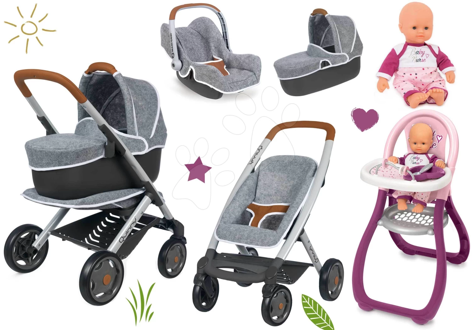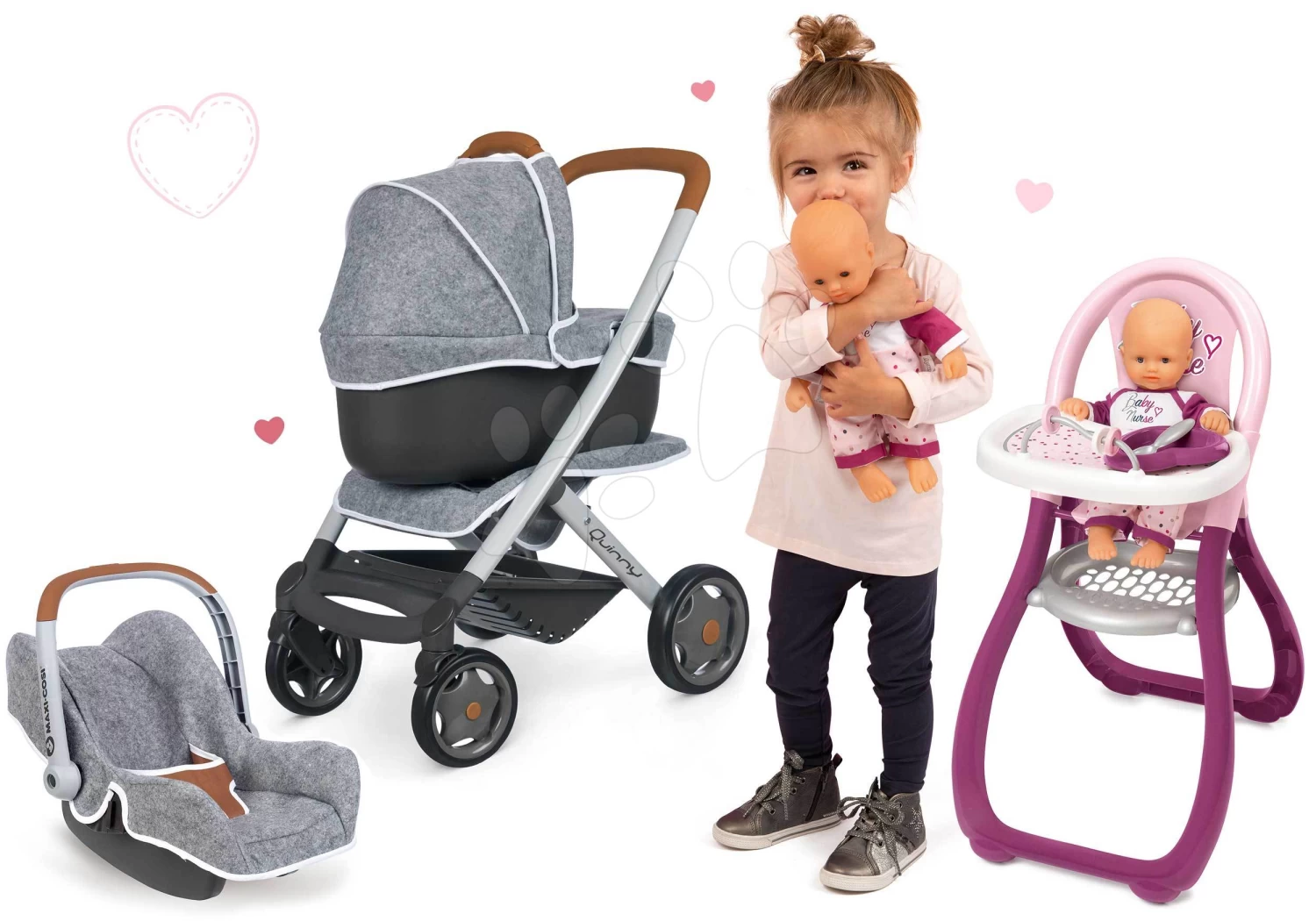 Puppenwagen-Set DeLuxe Pastell Maxi Cosi&Quinny Sport Grey 3in1 Smoby Und Ein Autositz Und Esszimmerstuhl Mit Violette-Puppe