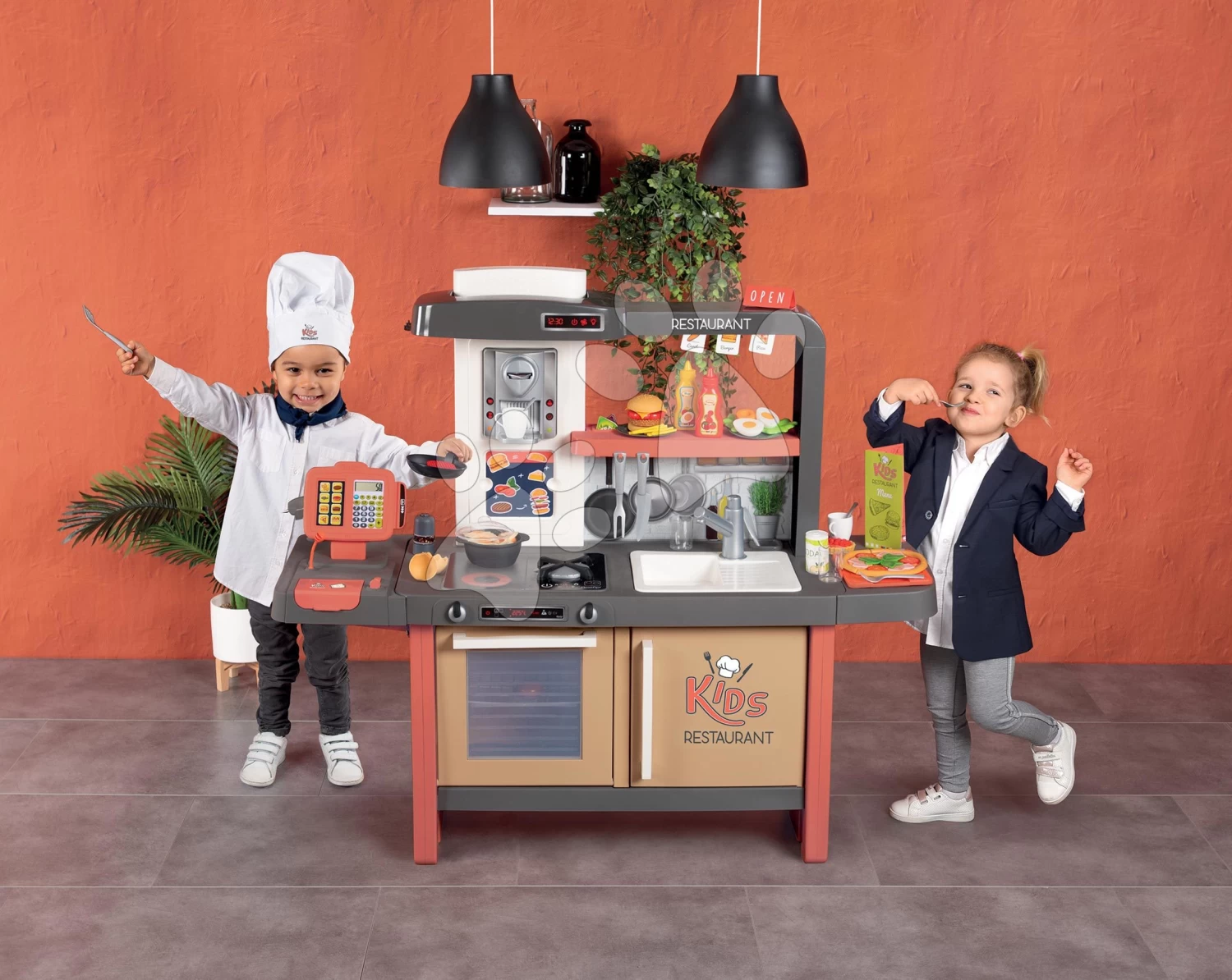 Restaurant Mit Elektronischer Küche Kids Restaurant Smoby Mit Fließendem Wasser Und Einer Funktionsfähigen Kasse Mit Kaffeemaschine Und Einer 101 Cm Hohen Esstheke