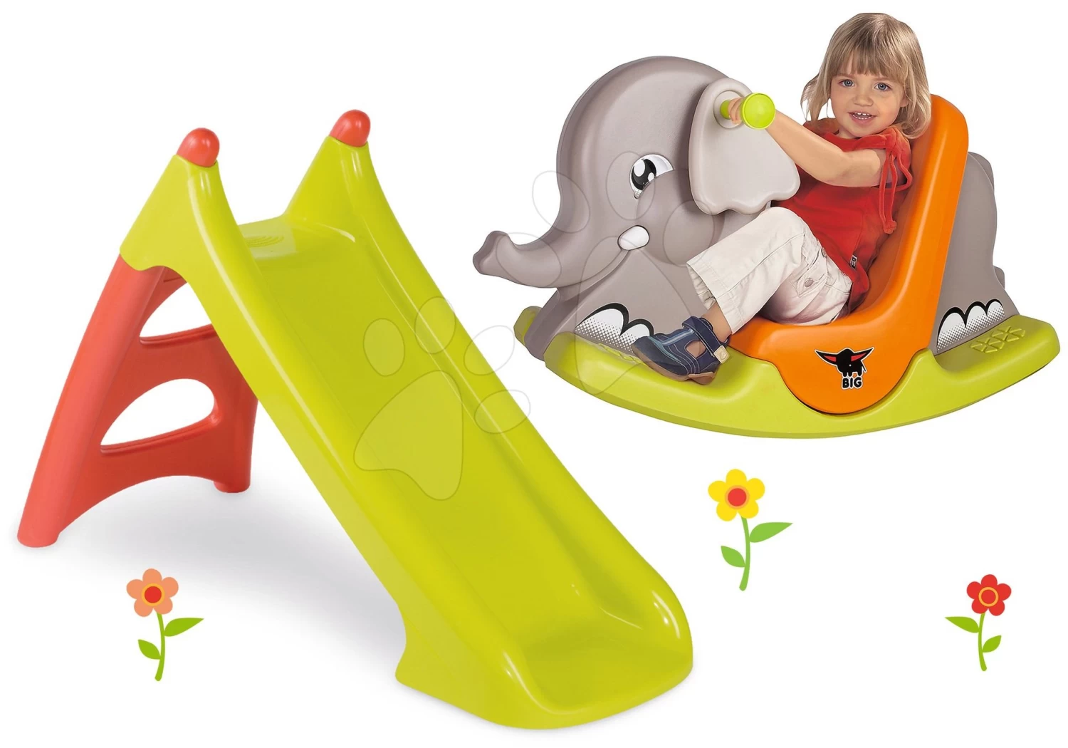 Rutschenset Toboggan Grün XS Smoby Und Schaukel Elefant Mit Beweglichen Ohren