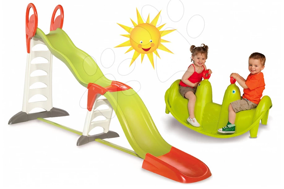 Rutschenset Toboggan Super Megagliss 2in1 Smoby Länge 3,75 / 1,5 M Und Schaukel-Hund Beidseitig Ab 24 Monaten