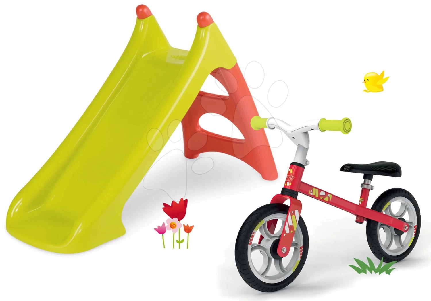 Set Rutsche Toboggan XS Grün Smoby Und Ein First Bike Balance Rutscher
