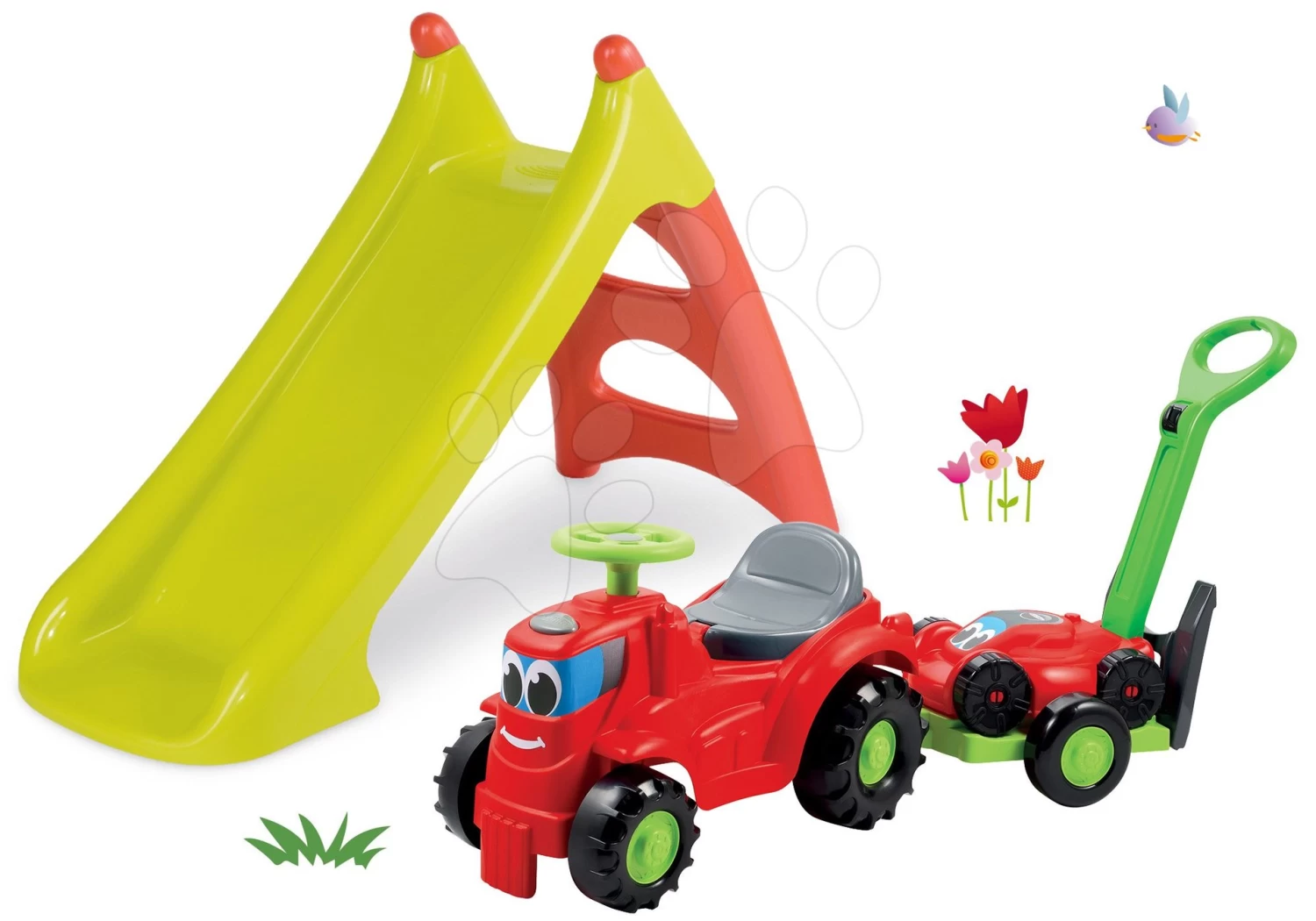 Set Rutsche Toboggan XS Grün Smoby Und Ein Rutscher Mit Dem Anhänger Und Rasenmäher
