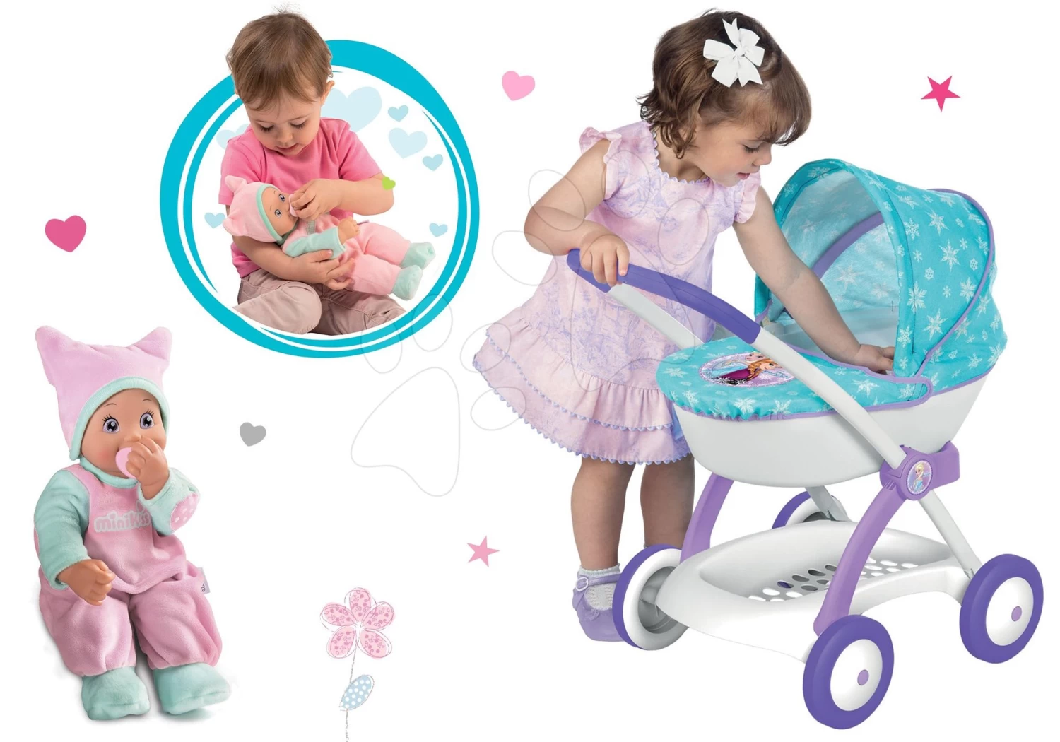 Set Tiefer Puppenwagen Für 42 Cm Puppe Frozen Disney Smoby Und Minikiss-Puppe Mit Sound Und Schnuller