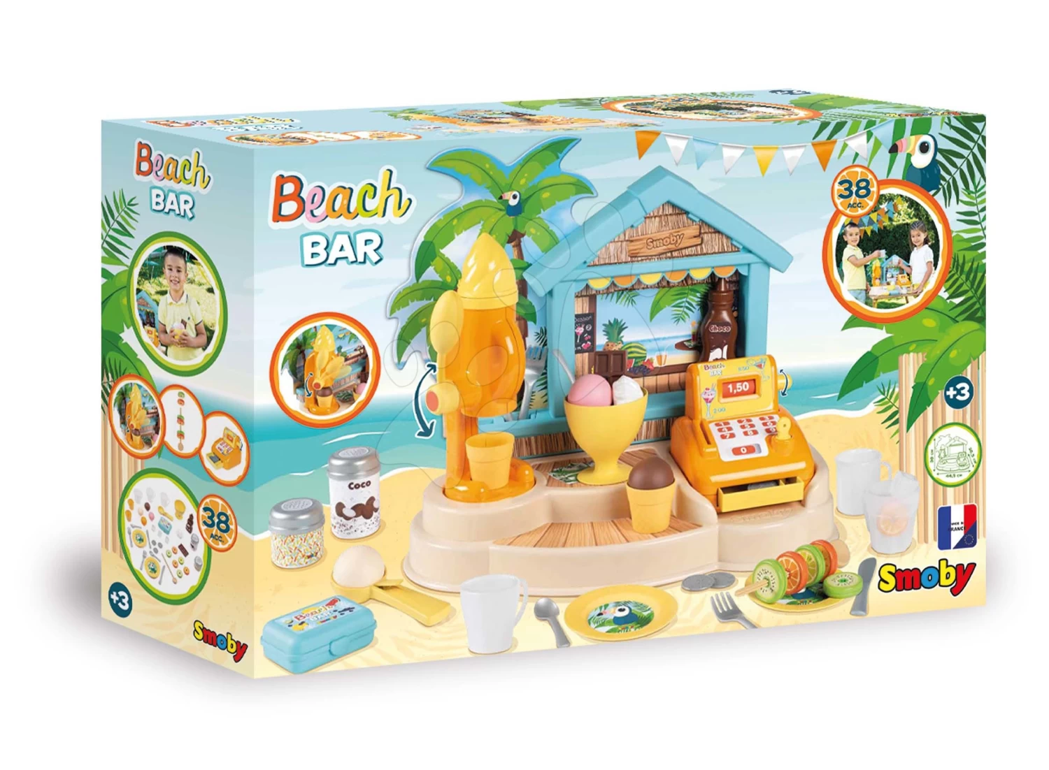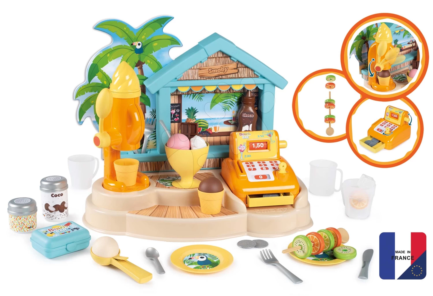 Strandbar Mit Eis Beach Bar Smoby Coole Snacks Im Verkaufsstand Mit Kasse Mit 38 Accessoires