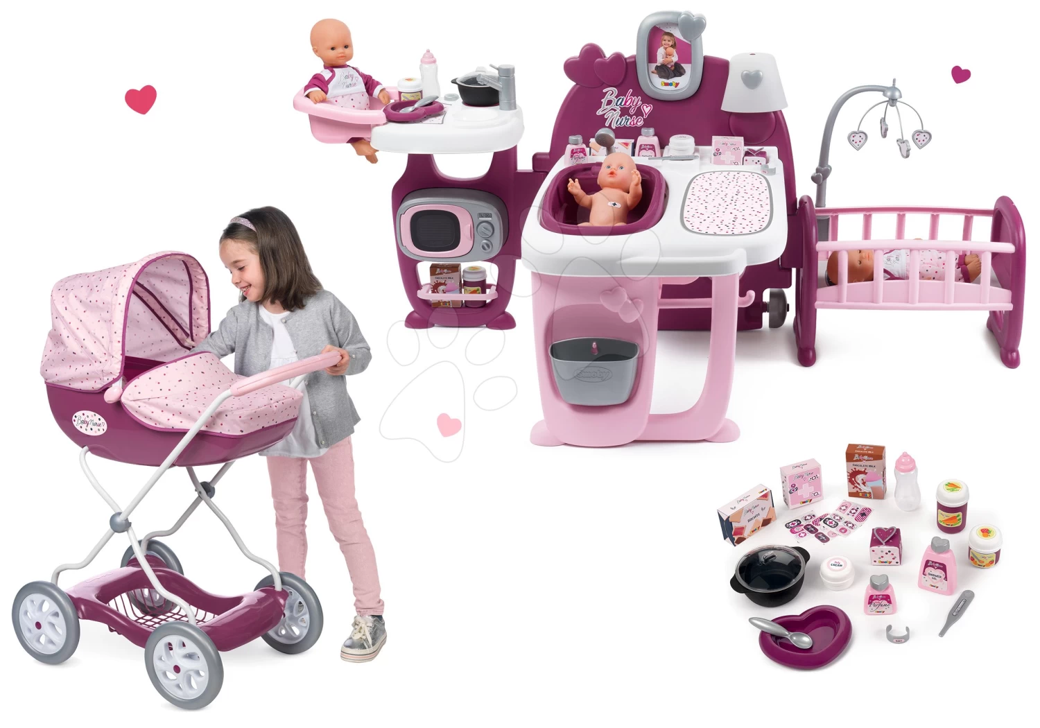 Violette Baby Nurse Large Doll’s Play Center Smoby Und Puppenwagen Deep Big Violette Für 42 Cm Puppe